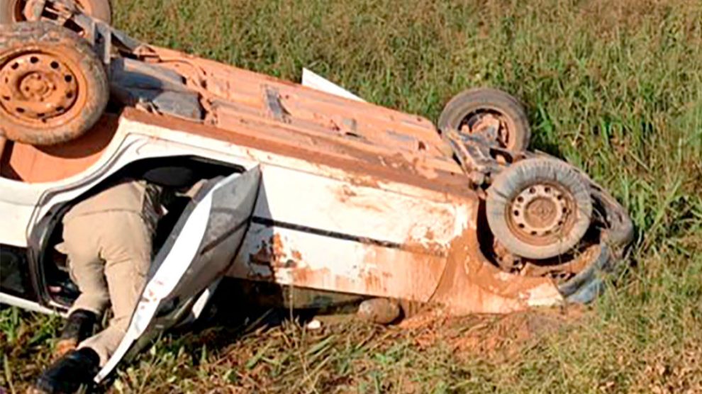 Carro capota em estrada de Guarantã do Norte motorista é socorrido