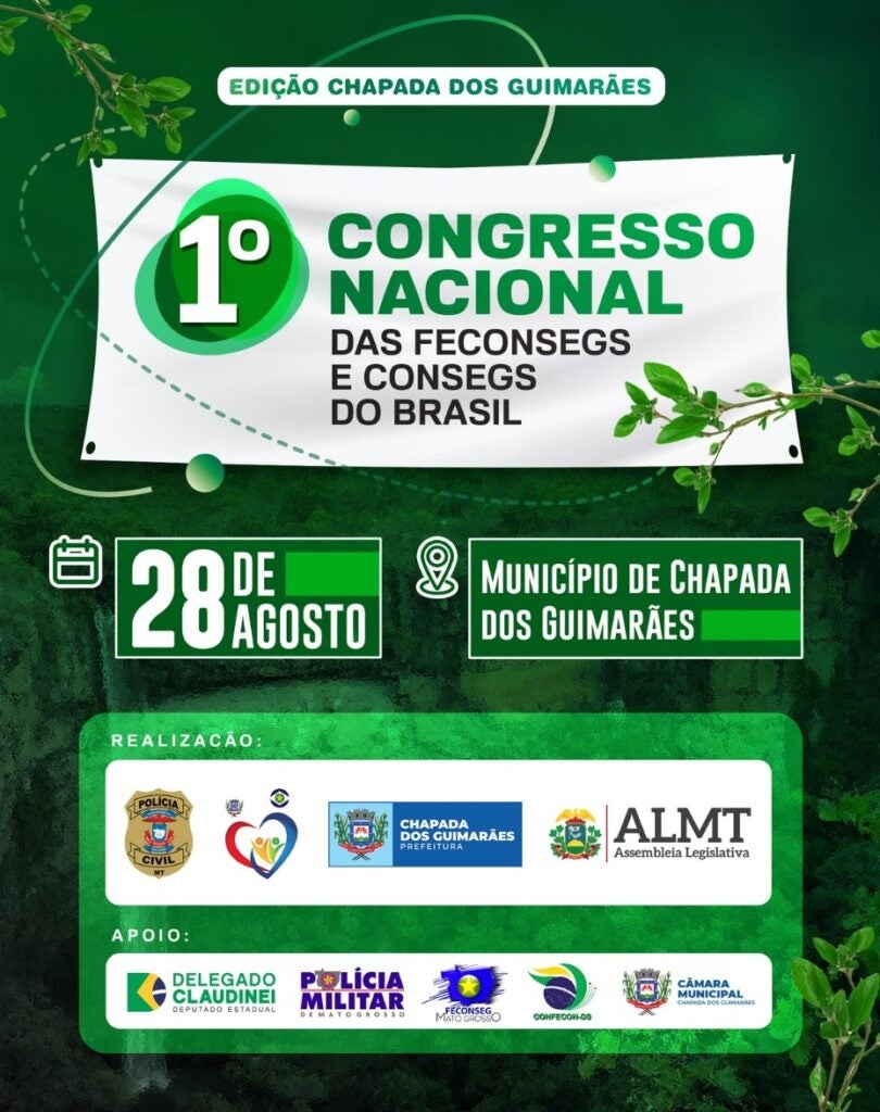 O 1º Congresso Nacional de Federações e Conselhos Comunitários de Segurança do Brasil é um evento promovido pela Assembleia Legislativa de Mato Grosso (ALMT), Polícia Judiciária Civil de Mato Grosso (PJC), Prefeitura de Chapada dos Guimarães. Também, conta com o apoio do deputado estadual Delegado Claudinei, PMMT, Feconseg – MT, Confederação Nacional das Feconsegs e Desenvolvimento Social e Congêneres (Confecon – DS) do Brasil e Câmara de Vereadores de Chapada dos Guimarães.