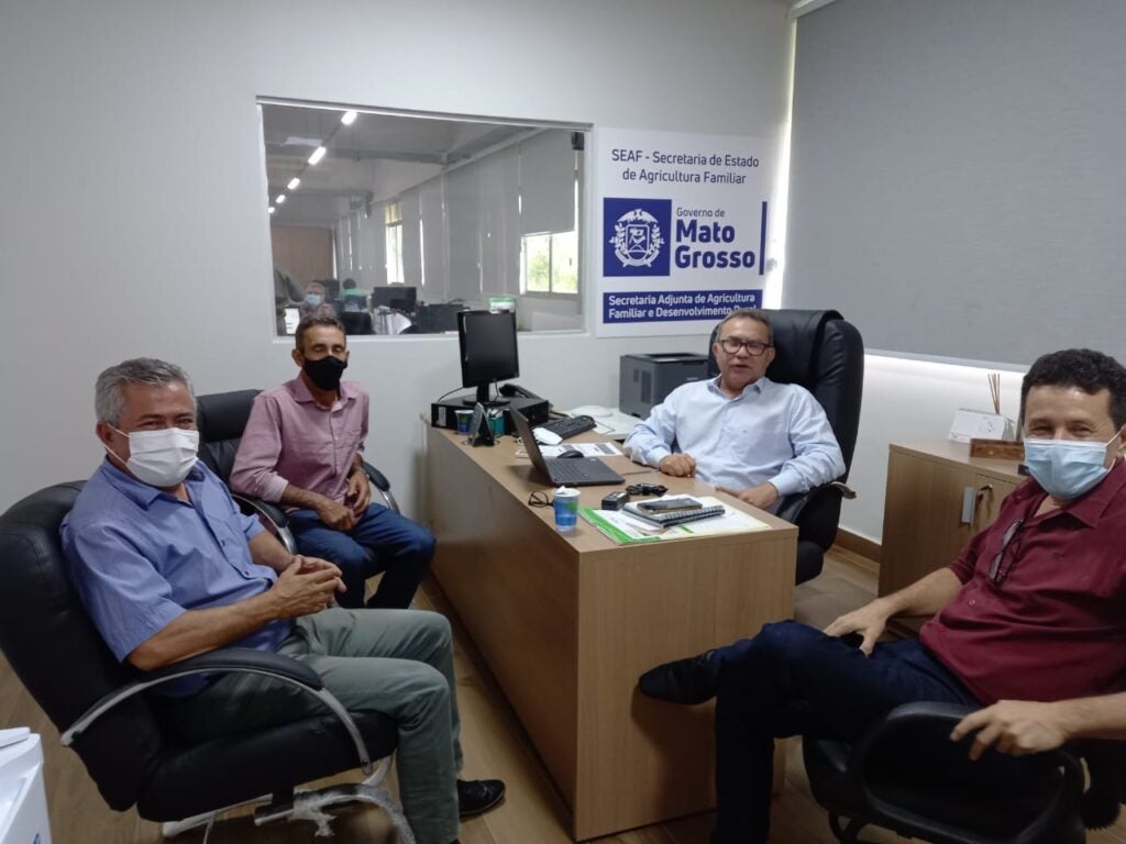 Vereadores em Guarantã do Norte, ZIlmar Assis de Lima (DEM) e Demilson da Páscoa (MDB), estiveram na manhã da quarta-feira (15), juntamente com o assessor do deputado estadual Dilmar Dal Bosco (DEM), Jilson Francisco Silva, em reunião com o secretário adjunto de agricultura familiar e desenvolvimento rural da SEAF – Secretaria de Estado de Agricultura Familiar – Cloves Figueiredo Cardoso, em busca de apoio para a agricultura familiar do município.