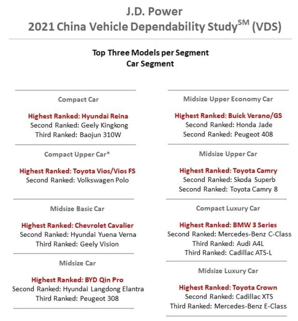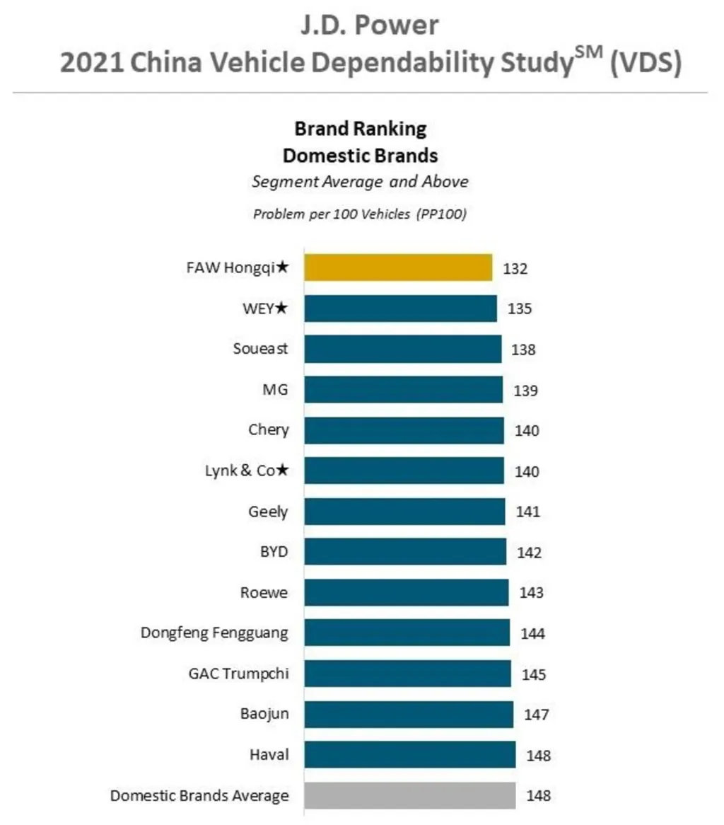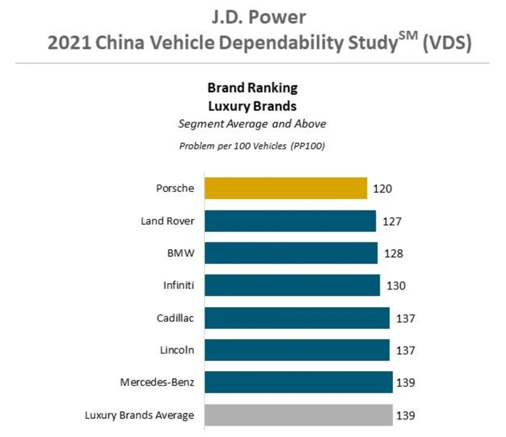 Uma pesquisa da JD Power revelou que os carros de luxo na China são os que mais dão dor de cabeça aos proprietários, reduzindo assim a margem de qualidade em comparação com os carros de marcas tradicionais.