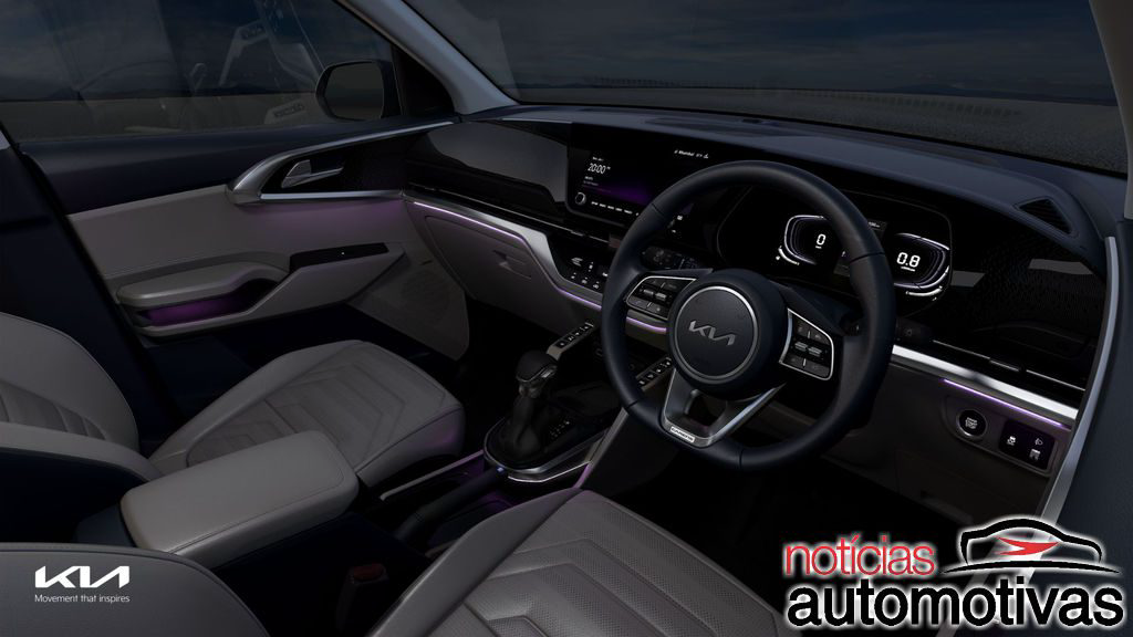 Por dentro, o crossover tem um painel alto e envolvente, que foca na sofisticação, com cluster digital e multimídia com tela grande. O acabamento envolvendo as maçanetas e a iluminação roxa em LED chamam atenção.