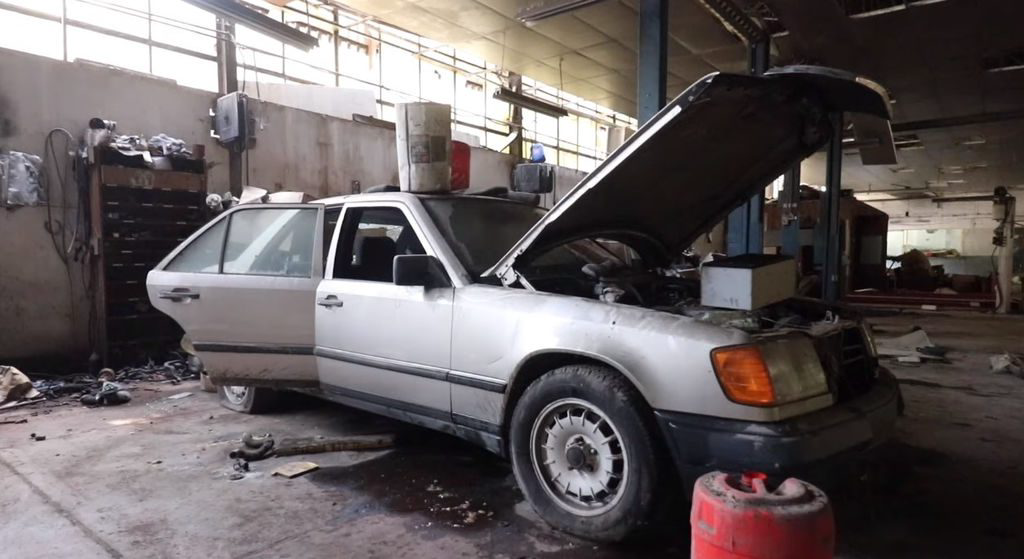 Falando em carros de outras marcas, essa revenda Renault tem ainda um Mercedes-Benz igualmente abandonado na enorme oficina. Na parte de funilaria, e pintura ainda se encontram tintas e massas de polir.