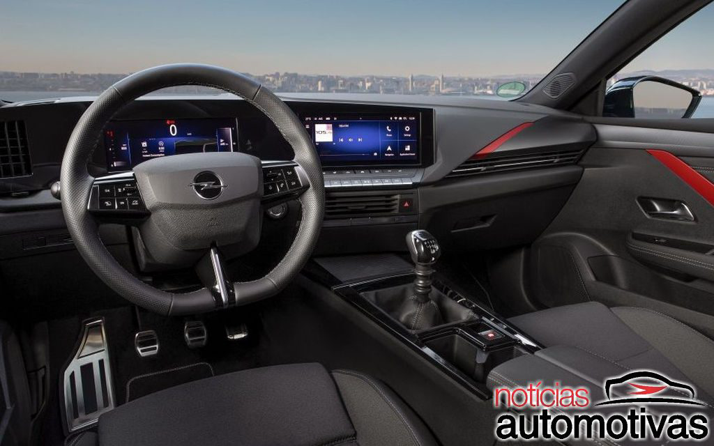 Por dentro, o Novo Astra emprega um conjunto retilíneo no painel com display contendo telas digitais para cluster e infotainment.