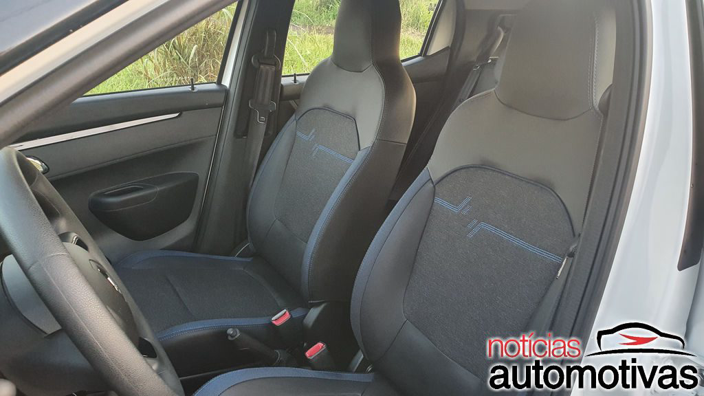 O câmbio, com cinco marchas, tem engates com alguma precisão, mas são mais suaves nas mudanças que o do Logan, por exemplo. A embreagem tem bom curso do pedal.