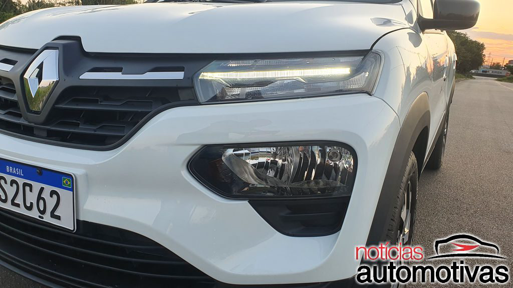 Visualmente, o Renault Kwid 2023 ganhou em expressividade, adotando luzes diurnas em LED e faróis duplos colocados mais abaixo, que dão um ar mais moderno ao pequeno.