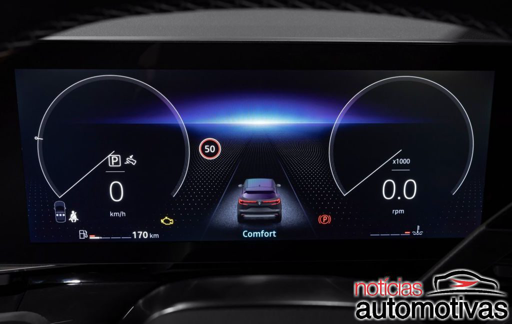 Por dentro, o destaque é o cockpit totalmente digital com cluster de 12,3 polegadas e infotainment de 12 polegadas, além de HUD colorido com área de 9,3 polegadas.