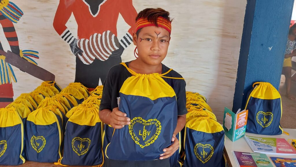 LBV entrega kits pedagógicos a estudantes indígenas da Aldeia Tadarimana em Rondonópolis