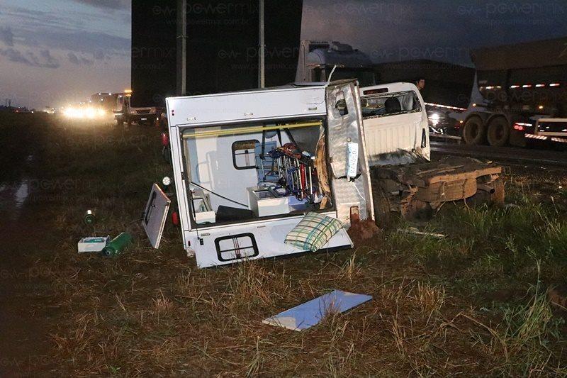 Com o impacto, a S-10 adaptada para o transportes de pacientes, pertencente à prefeitura de Matupá, que se encontrava na fila, foi empurrada para a pista contrária e atingida por outro veículo, vindo a tombar às margens da rodovia.