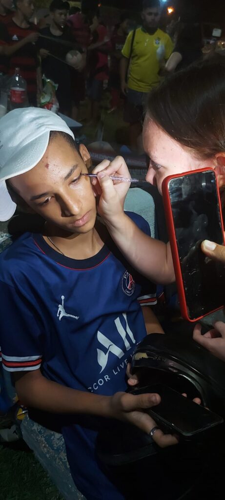 O Projeto conta com 15 voluntários que promovem o bem estar, nos bairros, com a apresentação de roda de capoeira, pintura corporal, distribuição de algodão doce, pipocas e outras guloseimas.