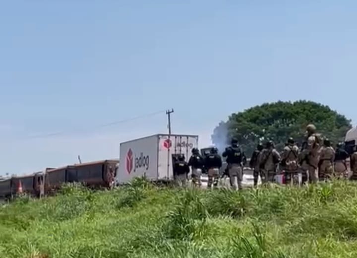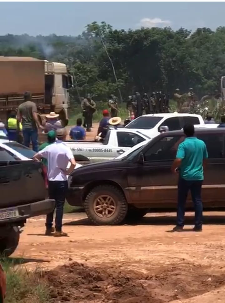 PRF lança  gás lacrimogêneo e tiro de borracha para dispersar  manifestantes em  Guarantã do Norte