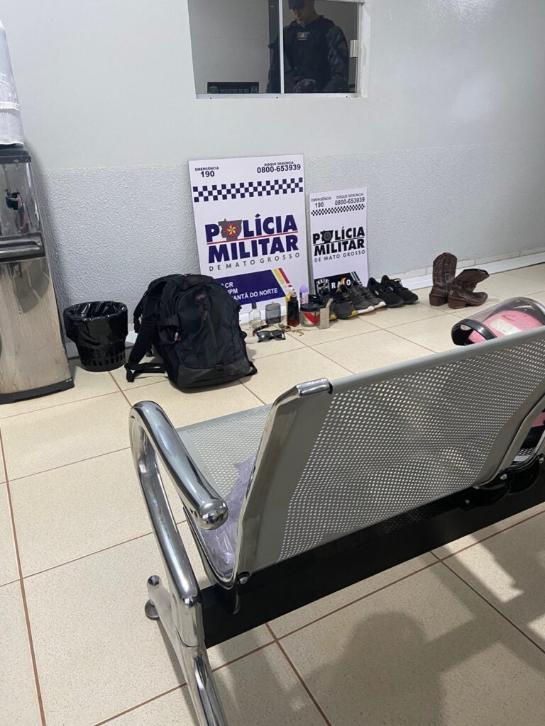 O suspeito estava em uma motocicleta Honda Biz de cor amarela, ao fazer a checagem constatou que a moto era produto de roubo e furto na cidade de sinop. Ao realizarem uma revista pessoal os policiais encontraram no bolso do individuo uma chave de que, o mesmo relatou que a chave era do quarto de um hotel ao qual ele estava hospedado.