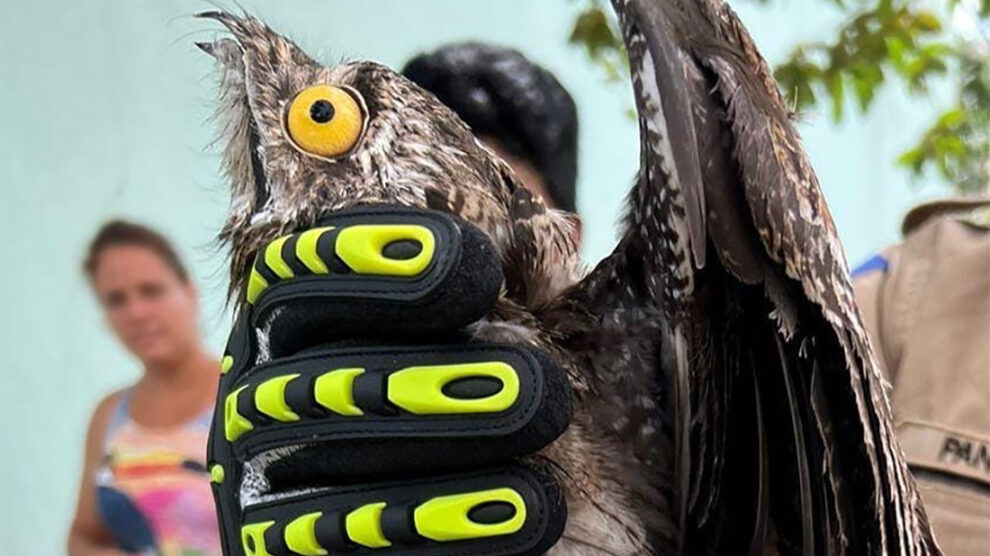 Corpo de Bombeiro captura urutau no quintal de casa em Guarantã do Norte