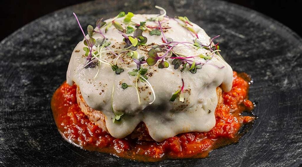 O prato nomeado pelo chef de “Lasanha três tempos”, sendo o primeiro deles sua chegada à mesa, ainda, de modo enformada. Na sequência, ela é desinformada na frente do cliente e, posteriormente, desperta a atenção e aguça o paladar do cliente. Neste momento, a fonduta cobre a superfície da massa e as ervas, como confete, se espalham. Deveras, uma espécie de mágica gastronômica.