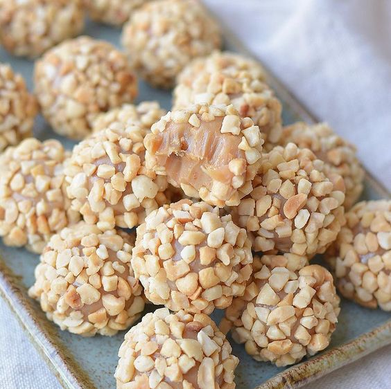 Começamos com uma receita de brigadeiro tradicional que todo mundo ama, feita a base de leite condensado, chocolate em pó e manteiga. A diferença aparece quando adicionamos à massa pé de moleque triturado. Finaliza a receita como de costume, boleie do tamanho que preferir e passe no pé de moleque também triturado ao invés de usar o granulado. Uma delícia.
