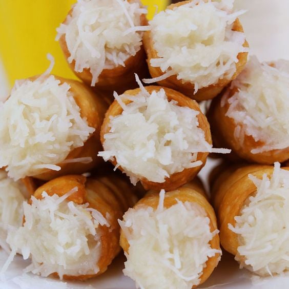 De forma bem prática, basta comprar a massa de canudinho que já vende pronta e rechear com bastante cocada cremosa. Para dar um toque especial, adicione pedacinhos de frutas cristalizadas ou amêndoas trituradas por cima vai deixá-lo ainda mais gostoso.