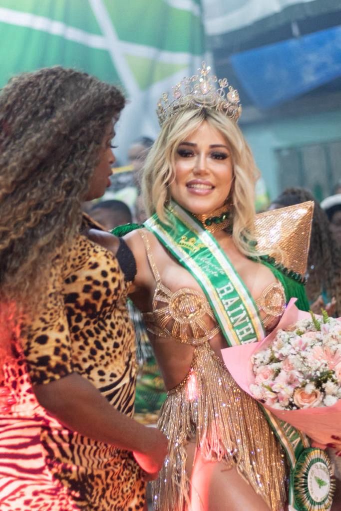 Quem corou a caminhoneira foi Bárbara Sheldon, musa da Unidos da ponte.  Ela foi escolhida pela Mulher Abacaxi por também  ser uma mulher trans.