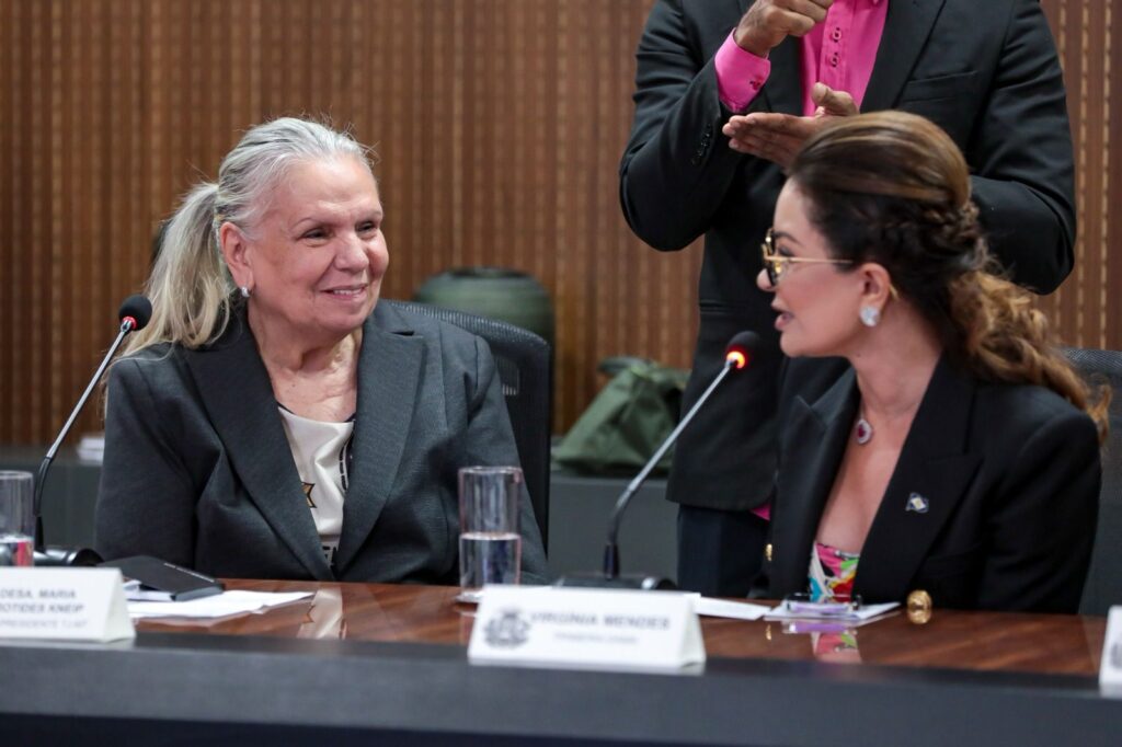 Kneip destacou a atuação da primeira-dama de MT, Virginia Mendes, no enfrentamento à violência doméstica. “Eu sei quem é Virginia Mendes à frente de políticas para as mulheres, da sua atuação na proteção aos direitos humanos das mulheres e vulneráveis, por isso estou aqui, porque isso é um sonho”.
