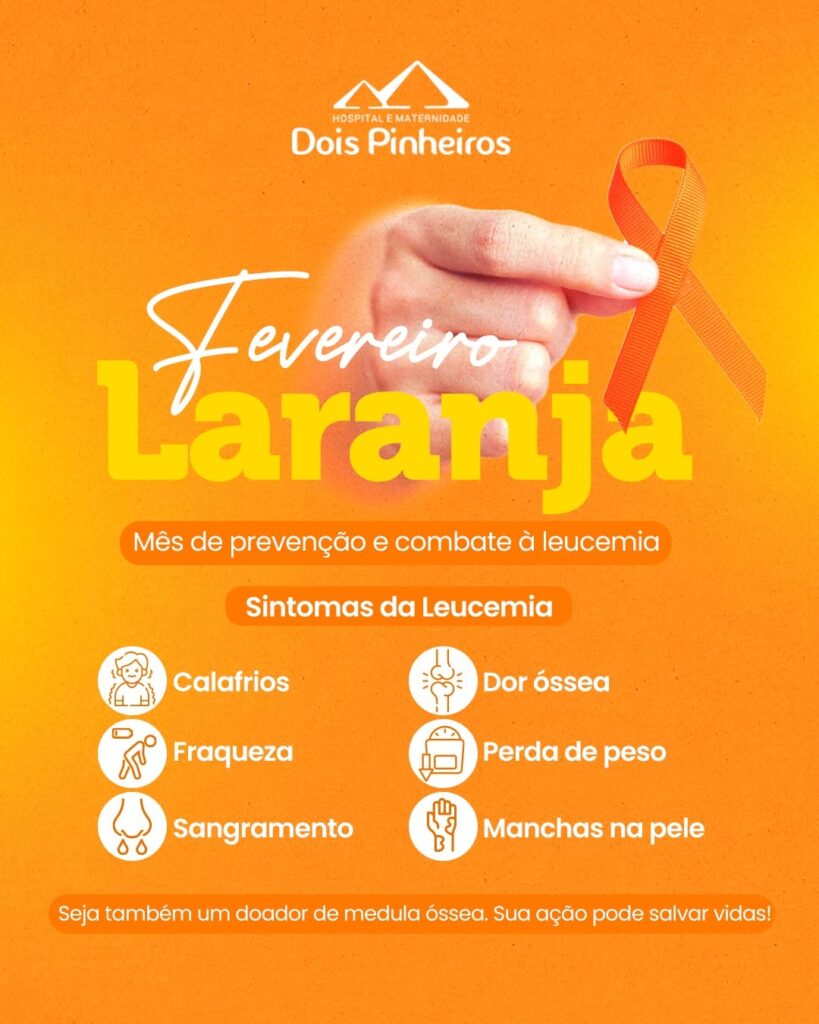 O segundo mês do ano é marcado pela campanha “Fevereiro Laranja”, voltada à conscientização e ao combate dos diferentes tipos de leucemia. A doença é mais comum entre crianças e adolescentes, mas pode surgir em diferentes fases da vida.