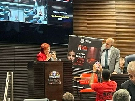 O projeto Cadeira Vazia, símbolo representativo da luta contra o feminicídio e iniciativa do Programa Ser Mulher, da UNG e Ser Educacional, esteve presente em sessão extraordinária na Câmara dos Vereadores de Guarulhos. A ideia é mostrar à sociedade que, naquela cadeira, poderia estar sentada uma aluna em busca de um futuro profissional, mas, devido ao feminicídio, não pode frequentar a Universidade.