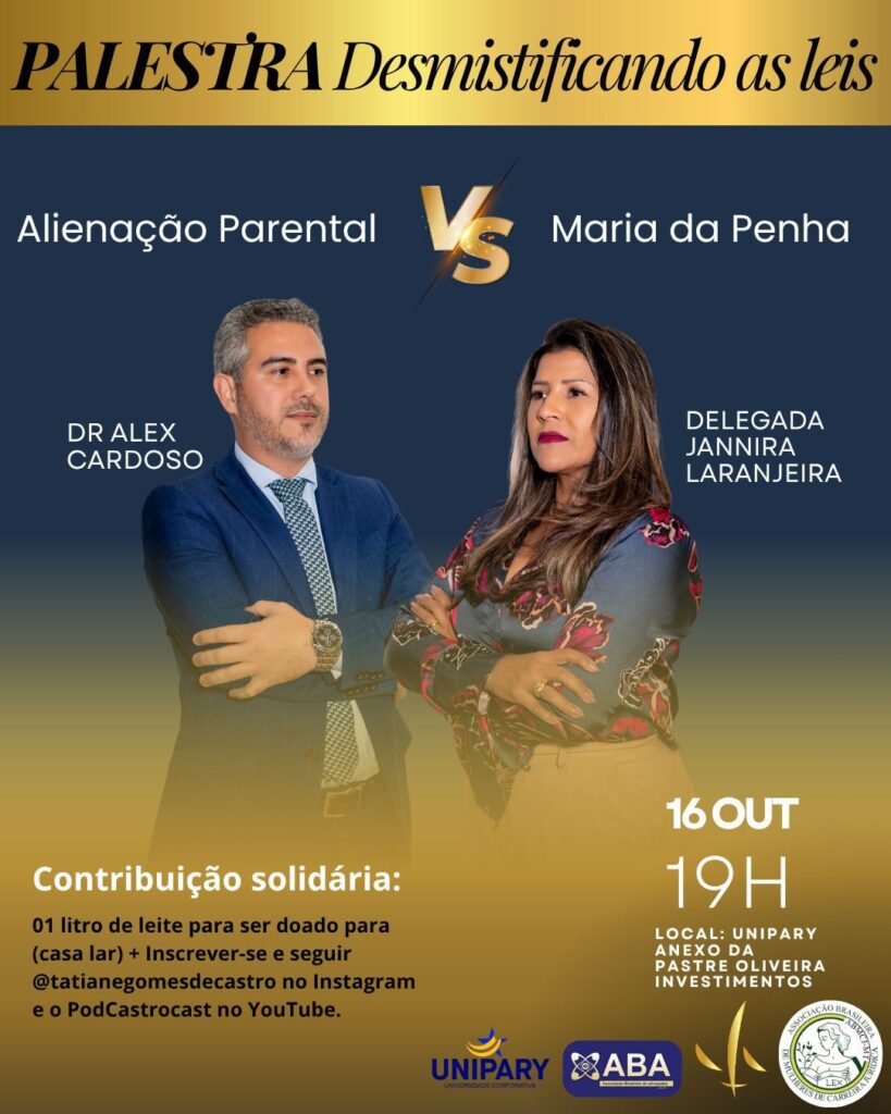 O evento contará com a participação do advogado especialista em alienação parental, Alex Sandro Rodrigues Cardoso e da delegada Jannira Laranjeira, especialista no enfrentamento á violência contra mulher e gestão em segurança publica , além da organizadora e idealizadora do evento, Tatiane Castro Salim, que destaca: “Quando a violência explode dentro da família, a criança não perde apenas a convivência: ela perde referências, proteção e futuro. Muitas vezes, fica órfã de pai e mãe ao mesmo tempo, seja pela morte, seja pelo afastamento emocional. É hora de pensar em políticas públicas que assegurem o olhar para elas.”