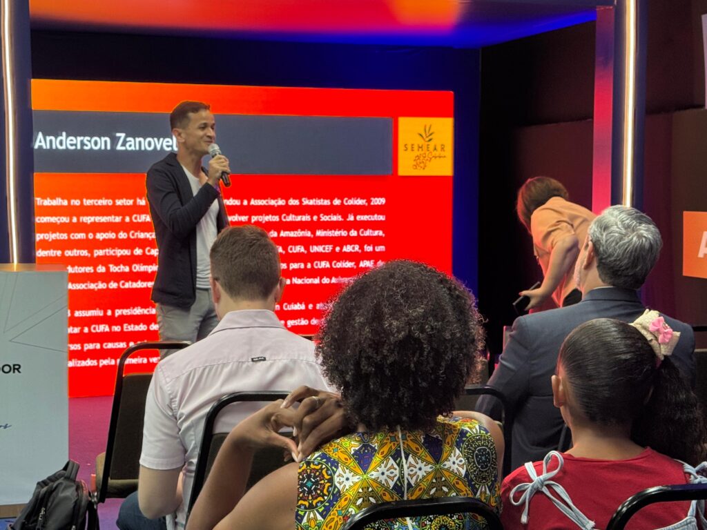 Com o tema, “18 maneiras de captar recursos para causas”, Anderson compartilhou estratégias e insights valiosos com empreendedores sociais e culturais. Além dele, a CUFA-MT foi representada pelas palestrantes Milena Vilar falando sobre “Media Training para Empreendedores”, e Joyce Lombardi, que abordou o tema “Arte como Negócio: Teatro e Cultura no Empreendedorismo Criativo”.