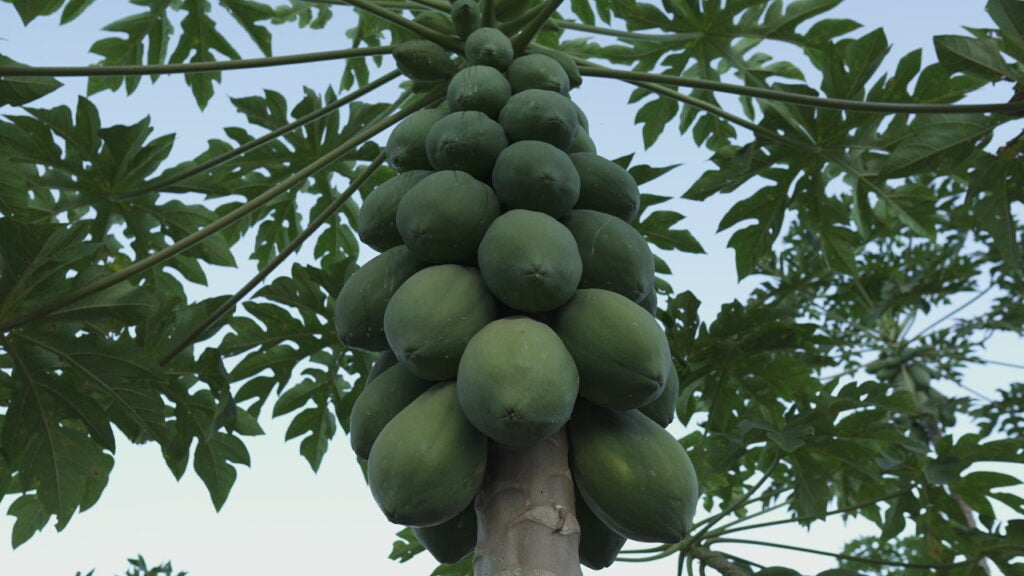 Entre os produtores beneficiados, Rosilaine Campos se destaca. Ela cultiva mil pés de mamão, dos quais 200 já estão em produção, rendendo cerca de 10 toneladas por ano. Rosilaine conta que as consultorias transformaram a forma como os alimentos chegam ao consumidor final, especialmente na merenda escolar. “Está chegando um produto excelente. A escola não tem mais reclamação”, afirma.